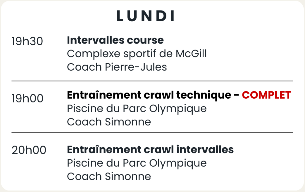 Tu souhaites t’inscrire à l’un de nos entraînements de course sur route, course en trail ou natation? Crée ton compte, deviens membre et joins notre communauté !