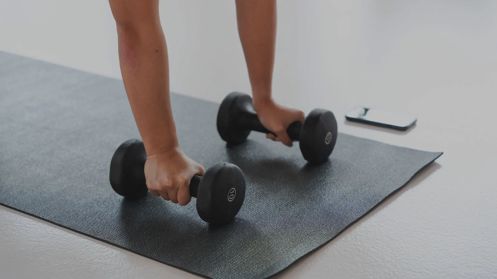 Matériel de base recommandé : Tapis, quelques poids libres, un élastique.